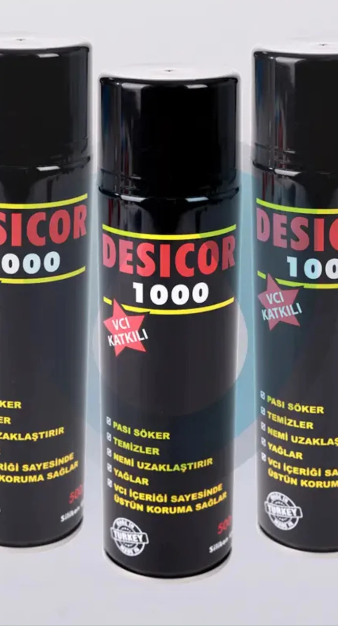 DESICOR Series. A high-performance VCI-based rust remover and surface protector. TRUGUARD DESICOR penetrates deeply with vapor-phase inhibitors to dissolve rust, loosen seized bolts and nuts, and form a moisture-repellent film on metal surfaces. Enriched with molybdenum disulfide (MoS₂), it also provides high-pressure lubrication, making it ideal for maintaining mechanical parts, gears, and heavily loaded equipment surfaces.